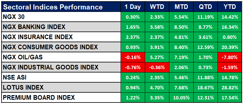 Nigeria Sectoral Indices Performance