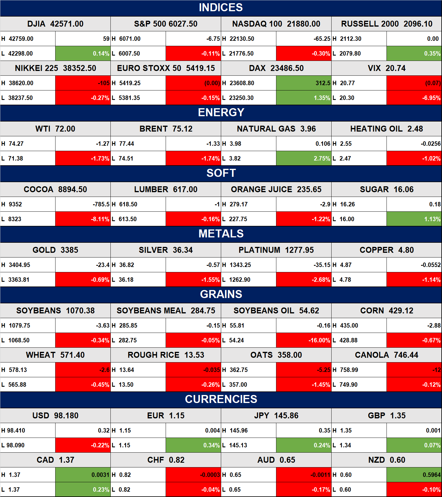 Indices, Commodities & Currencies