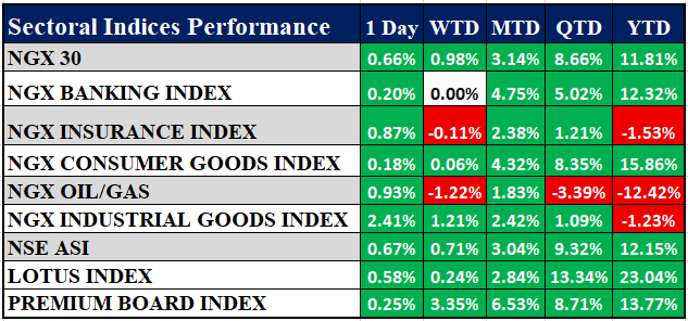 Nigeria Sectoral Indices Performance