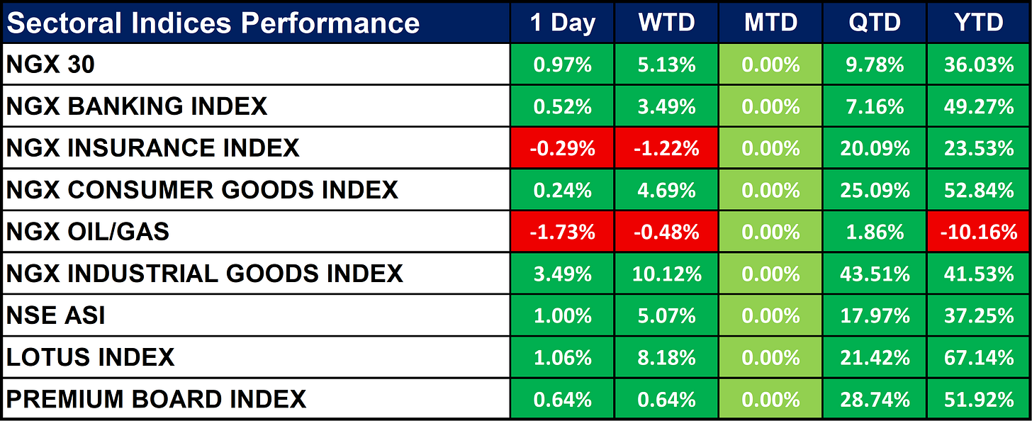 Nigeria Sectoral Indices Performance