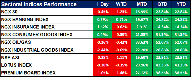 Nigeria Sectoral Indices Performance