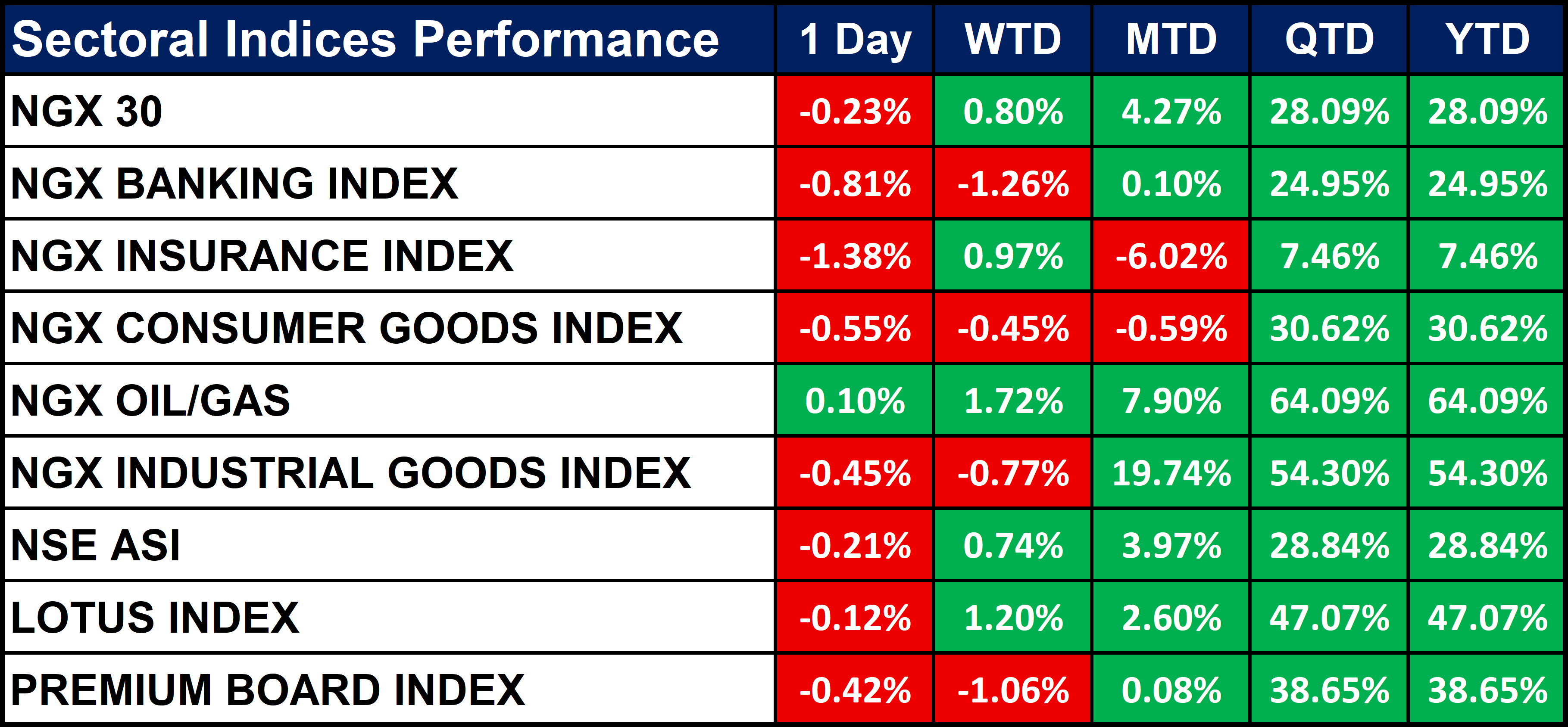 Nigeria Sectoral Indices Performance