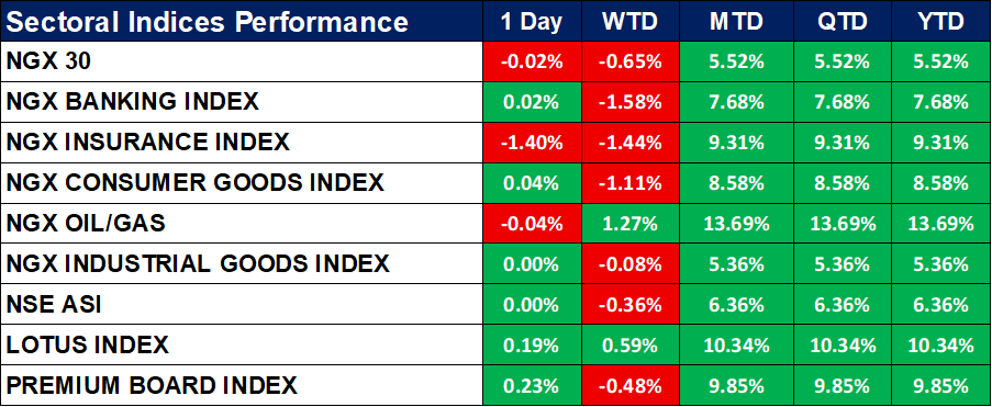 Nigeria Sectoral Indices Performance