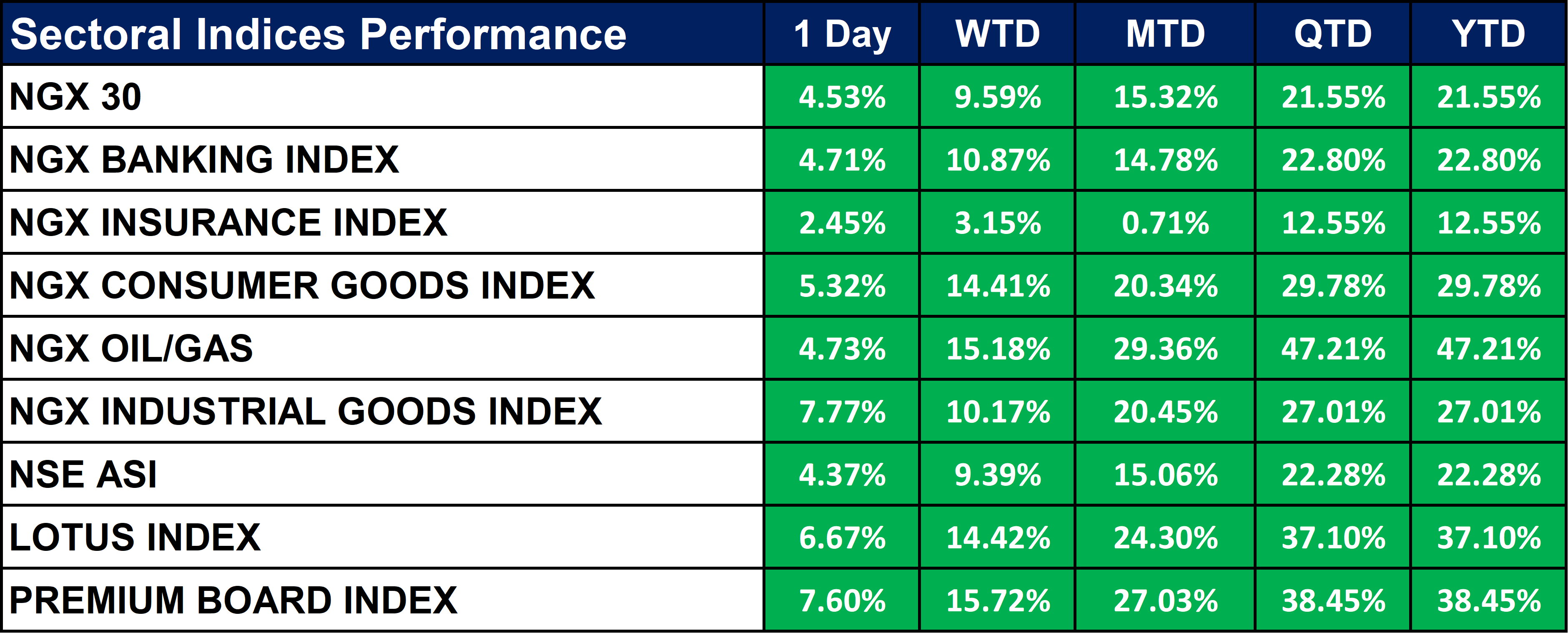 Nigeria Sectoral Indices Performance