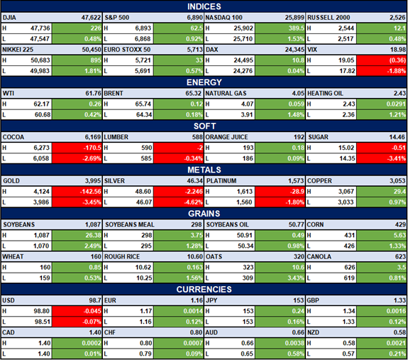 The table below depicts that the Global equities advanced, with the Dow Jones (+0.48%), Nasdaq 100 (+1.53%), and Nikkei 225 (+1.81%) all closing higher.