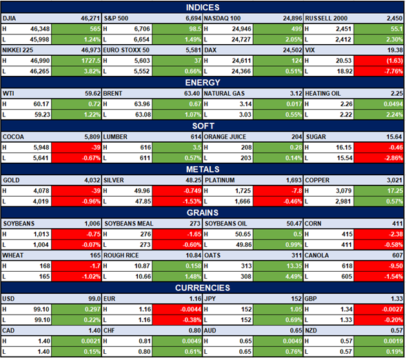 The table below depicts that the markets mostly rose, led by tech and energy sectors.