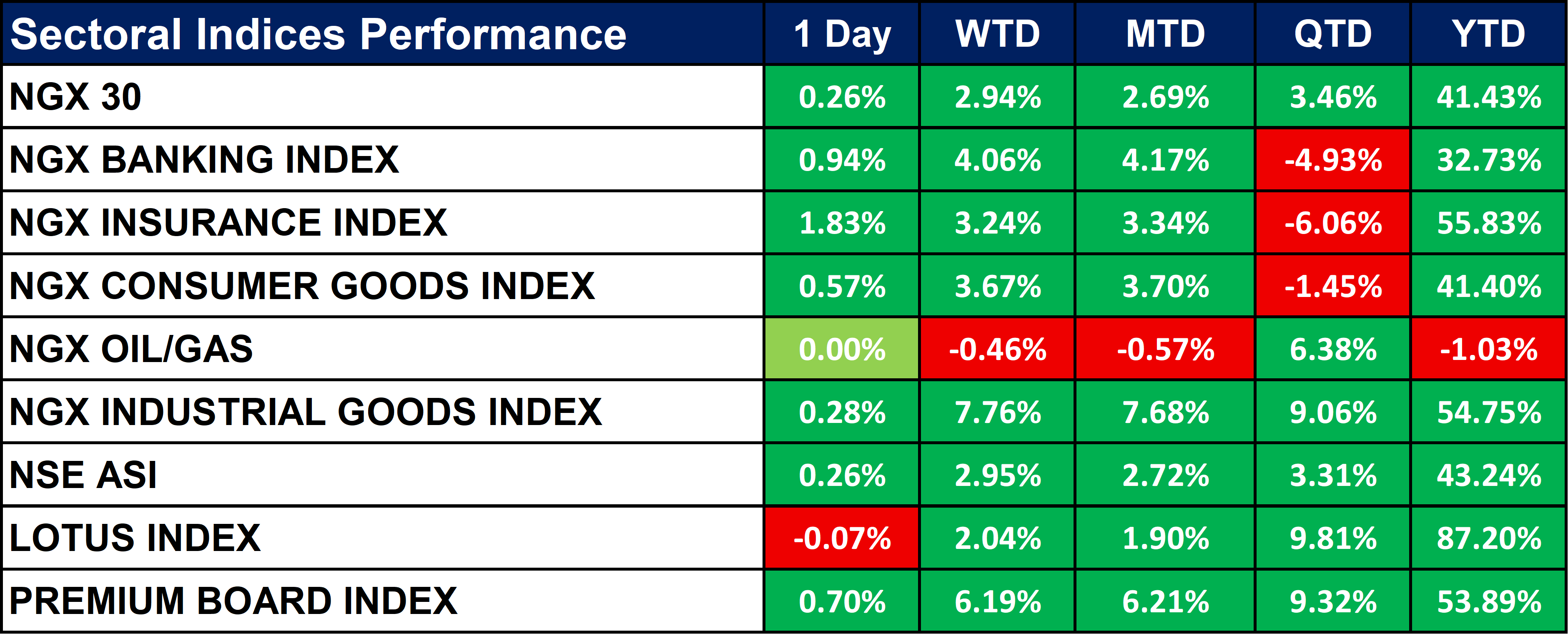 Nigeria Sectoral Indices Performance
