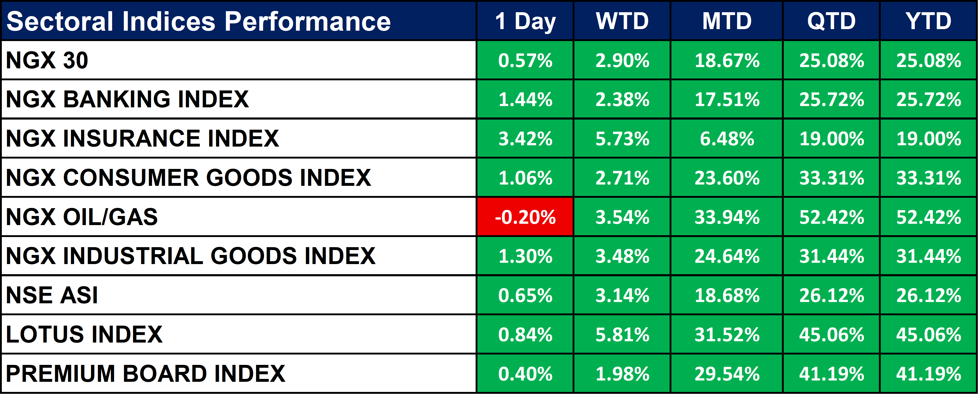 Nigeria Sectoral Indices Performance