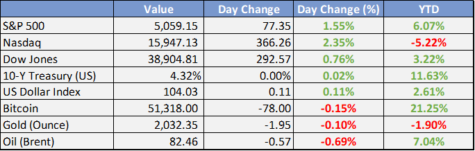 The yield on the US 2-year treasury increased from a low of 4.58% to 4.66%, and the 10-year treasury yield climbed from 4.25% to 4.32%. The auction for 20-year bonds displayed a significant tail and a weak bid-to-cover ratio, indicating less demand than expected. Market expectations for the Federal Reserve's funds rate, which is at 5.375%, remain steady for the upcoming March meeting, but there is a 90% likelihood of a rate decrease by June.