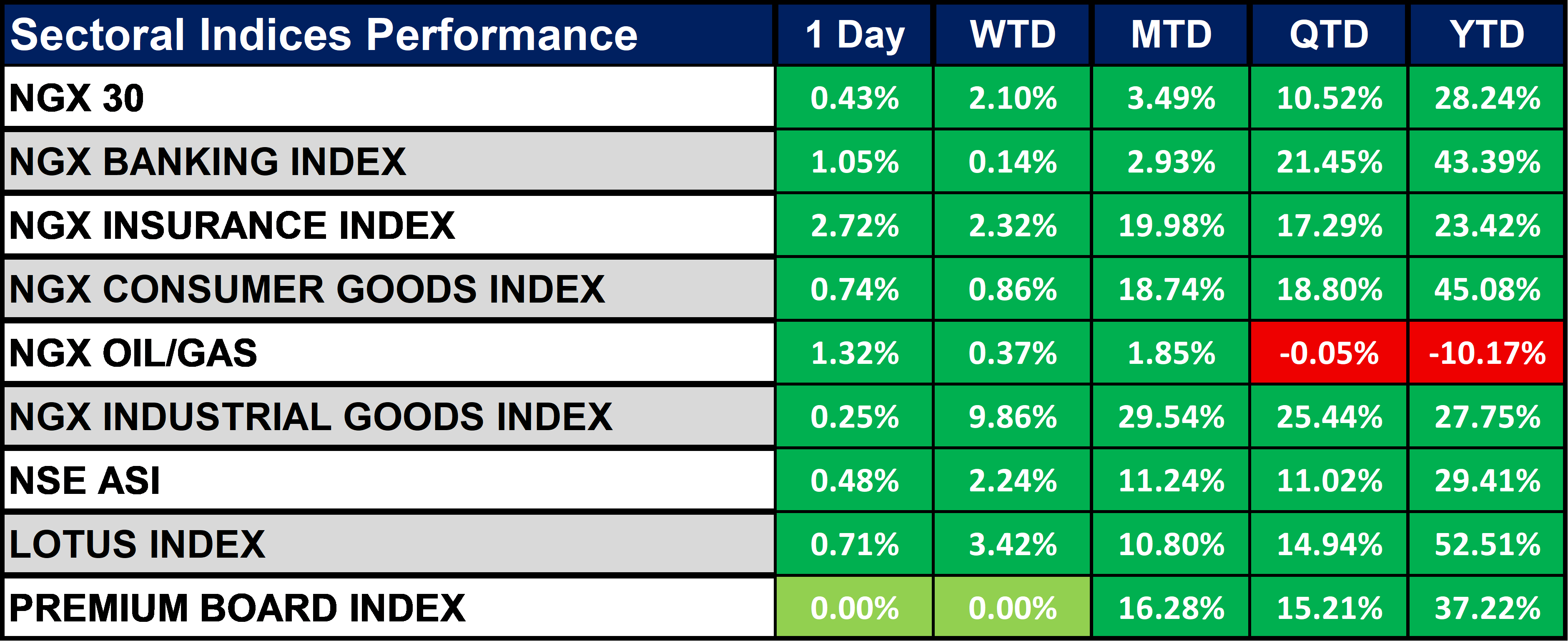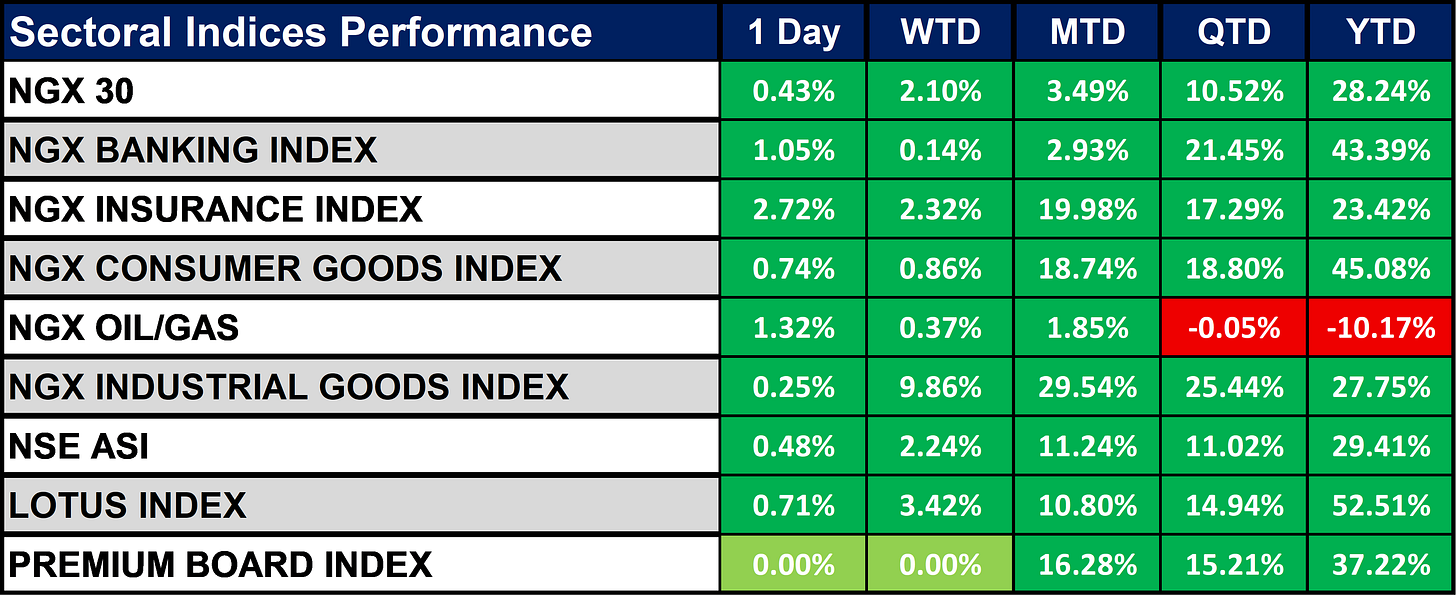 Nigeria Sectoral Indices Performance