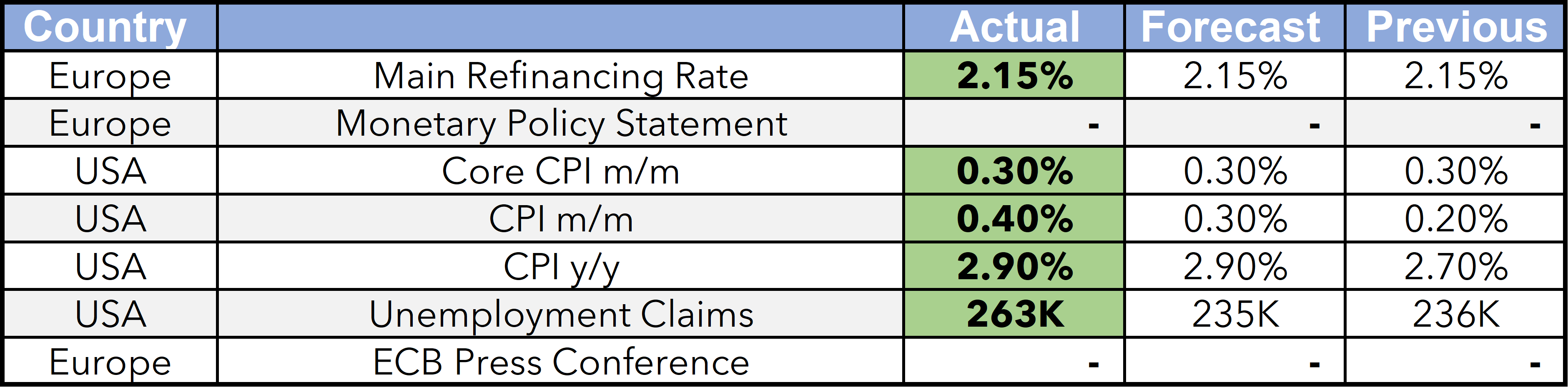 The U.S. dollar weakened after August inflation came in slightly hotter and jobless claims surged to a four-year high, strengthening expectations that the Fed will cut rates by 25 bps next week. CPI rose 0.4% in August and 2.9% year-on-year, while jobless claims hit 263,000, signaling labor market weakness. Markets see a 91% chance of a 25 bp cut and a small chance of a larger 50 bp move. The euro and sterling gained against the dollar, while the yen and Swiss franc also strengthened slightly. - Reuters