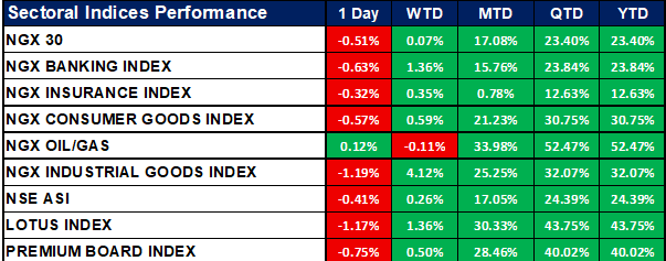 Nigeria Sectoral Indices Performance