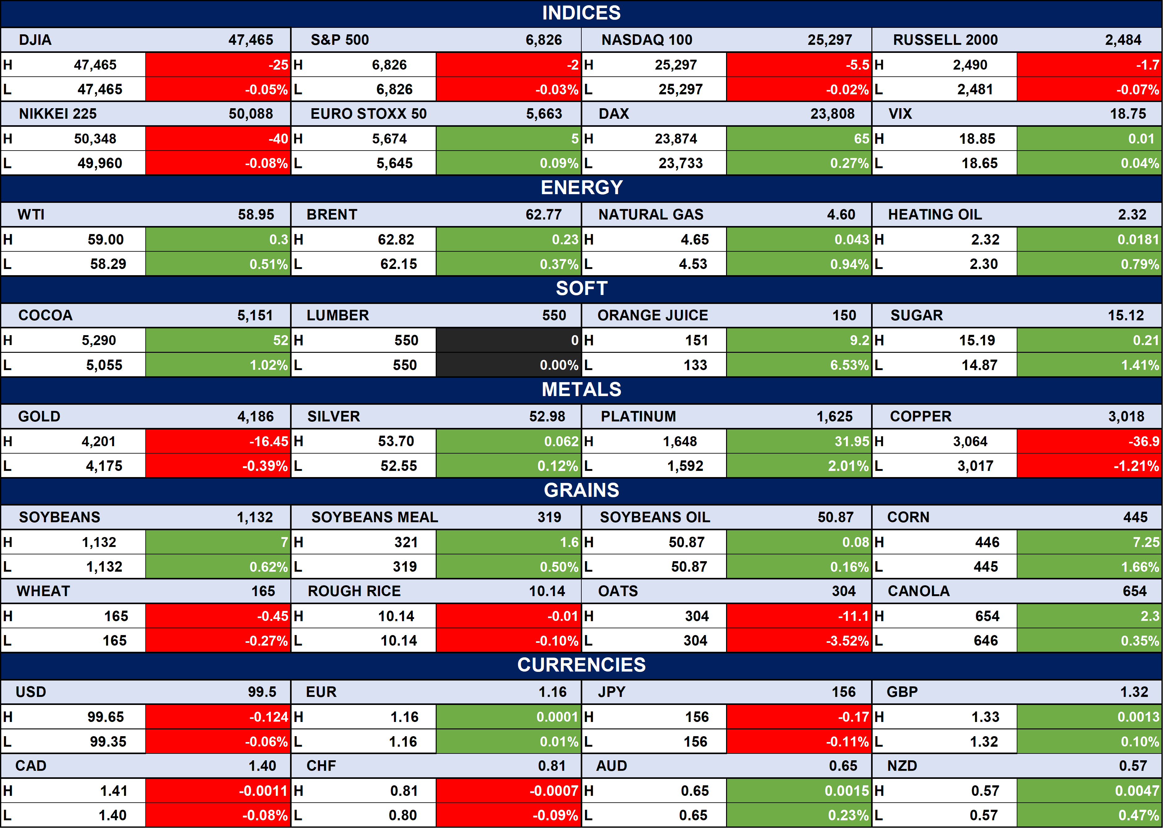 Agricultural commodities showed a mixed pattern, and some major currencies moved narrowly, reflecting a steady but cautious global risk environment.