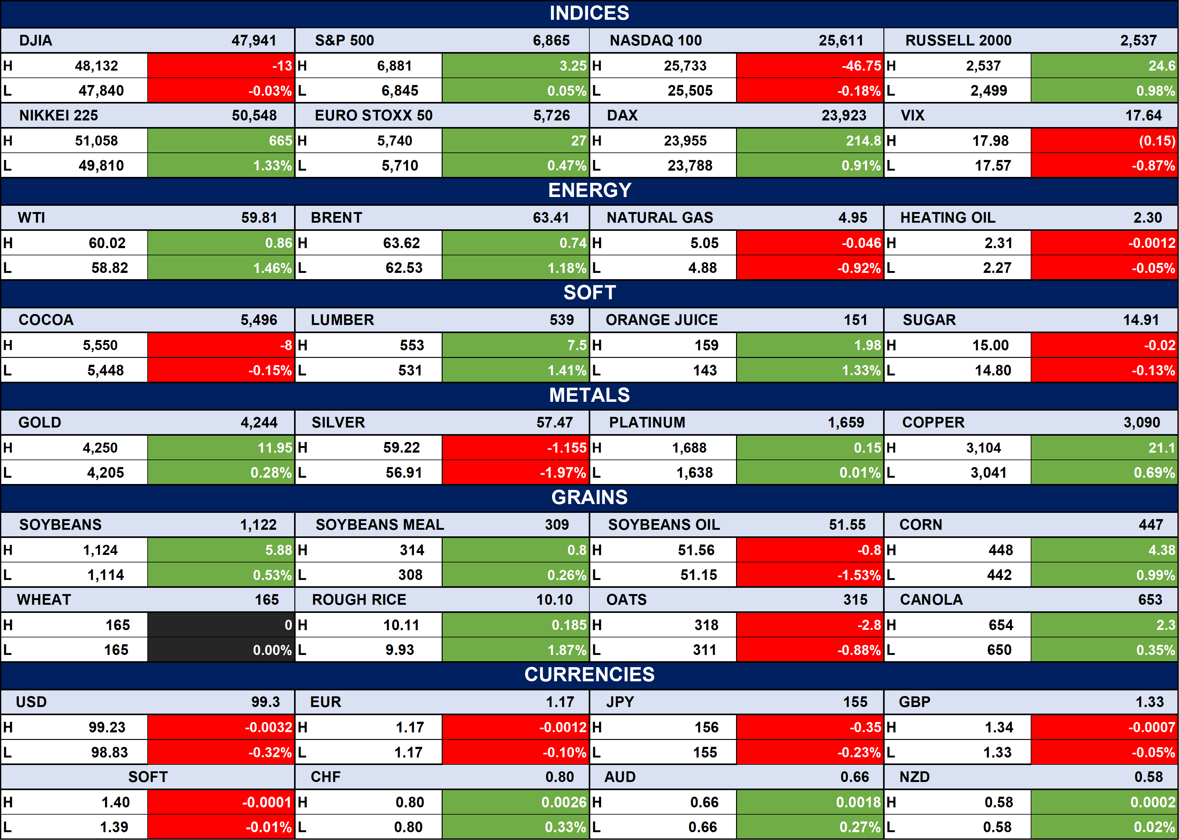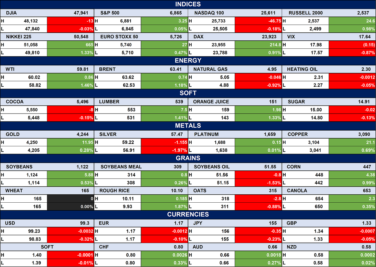 Most grains and soft commodities rose, and major currencies were broadly stable with only marginal movements.