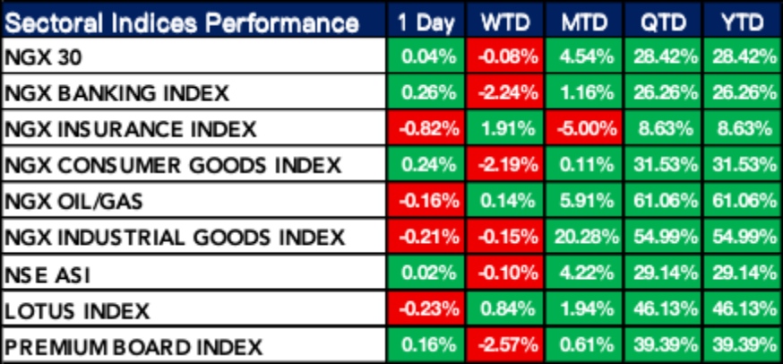 Nigeria Sectoral Indices Performance