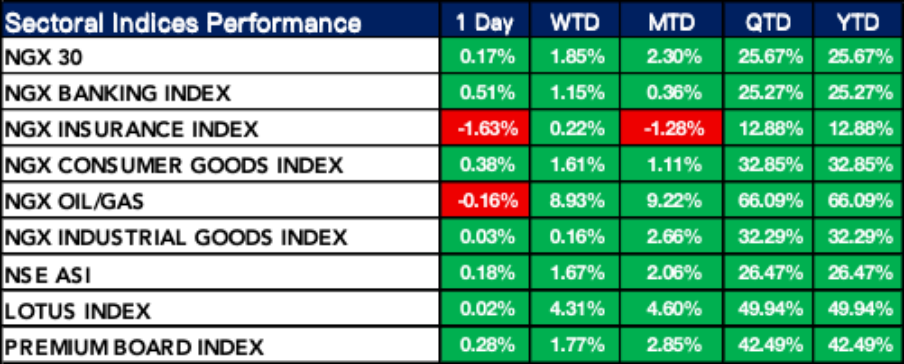 Nigeria Sectoral Indices Performance