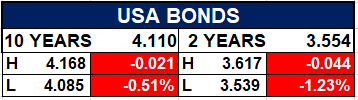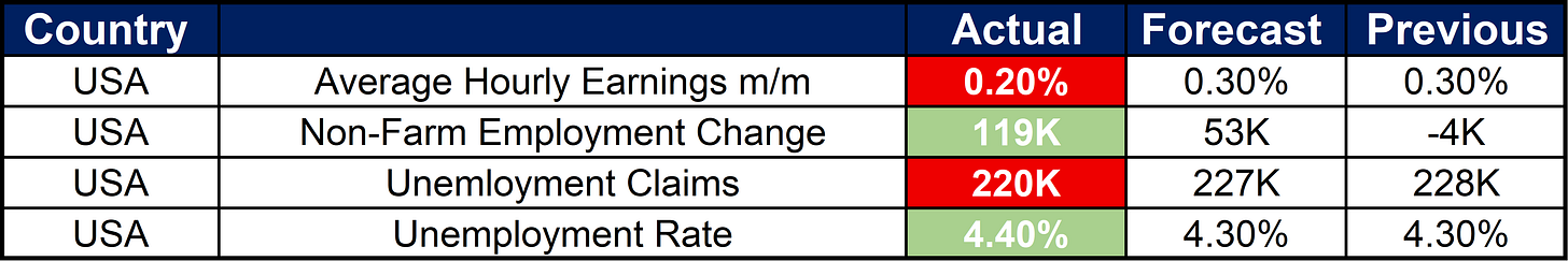 The table below depicts that the Global markets traded mostly lower as major U.S. and European equity indices declined, while the VIX spiked over 6%, signalling increased risk-off sentiment. Energy was mixed with slight losses in oil but gains in natural gas, while soft commodities showed volatility, particularly cocoa and orange juice.