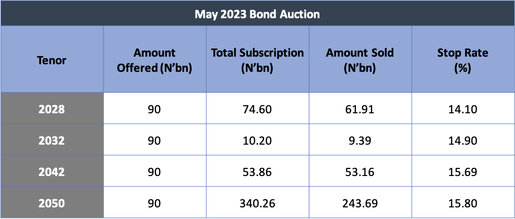 The 2050 tenor saw the strongest demand, while other tenors had limited interest. The Debt Management Office (DMO) allocated N368.15 billion. Marginal rates increased for certain tenors compared to the previous auction. Analysts anticipate reduced buying in the secondary market due to cautious investor sentiment influenced by the April CPI rise to 22.22%.$800m Loan: World Bank Clears Air, Says Decision to Draw Down Facility Rests with Incoming Govt - This Day