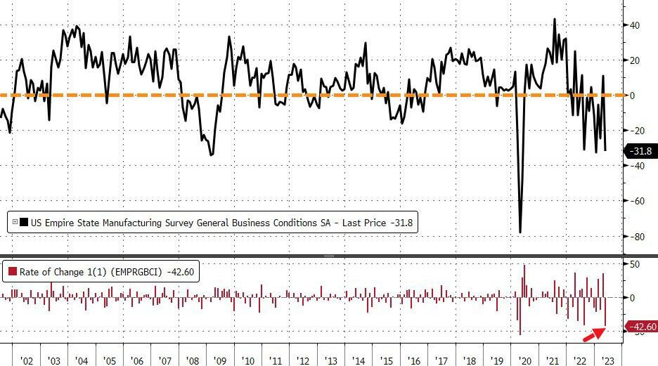 Monday: US NY Empire manufacturing comes in at -31.8; est: -4.0.