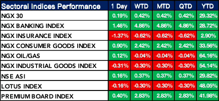 Nigeria Sectoral Indices Performance