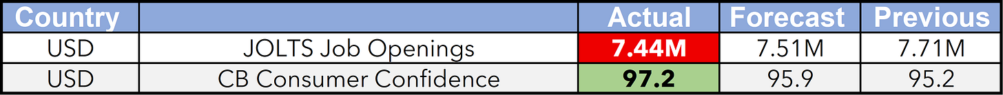U.S. consumer confidence rose slightly in July to 97.2, but the improvement was less than expected, and perceptions of job availability hit their lowest since March 2021, signaling a softening labor market. While pessimism about the future eased, concern about current job conditions continues to grow. - Reuters