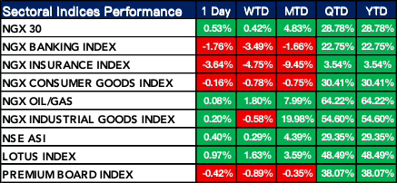 Nigeria Sectoral Indices Performance