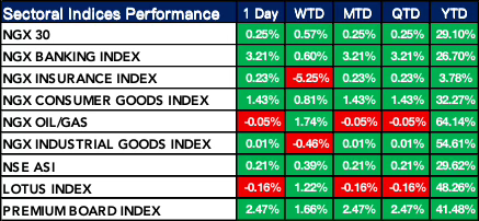 Nigeria Sectoral Indices Performance