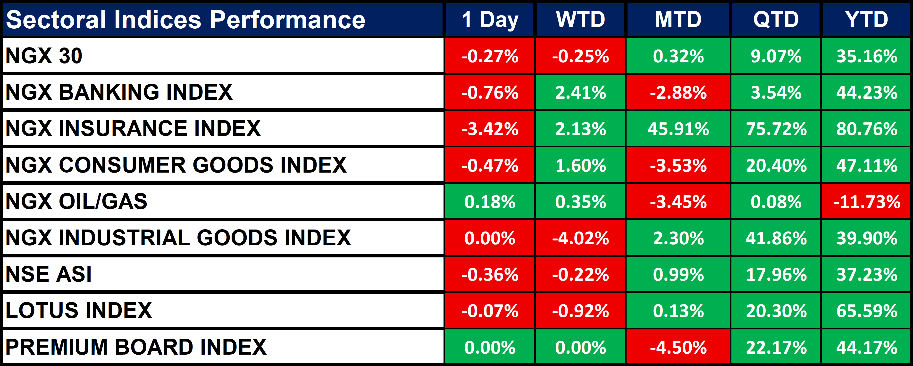 Nigeria Sectoral Indices Performance