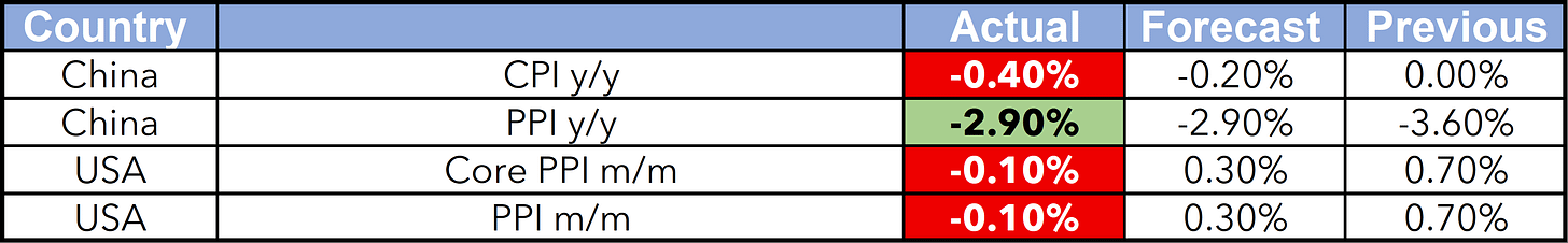 U.S. producer prices fell 0.1% in August, driven by weaker trade services margins and mild goods price increases, suggesting businesses may be absorbing some tariff costs amid soft domestic demand and a weak labor market. Annual PPI rose 2.6%, down from 3.1% in July. The data reinforces expectations of a Federal Reserve rate cut next week, as inflation pressures remain subdued while job growth has nearly stalled. Markets reacted with higher stocks, a softer dollar, and lower Treasury yields. - Reuters