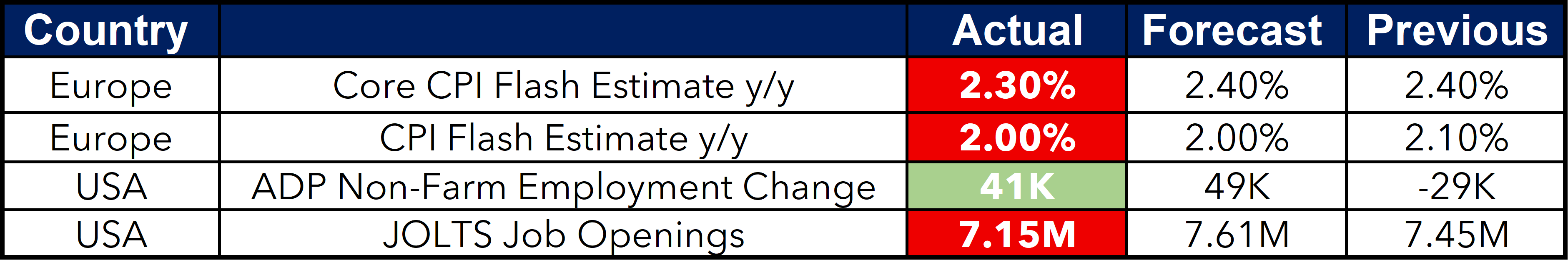 The table below depicts that the Global markets showed mixed performance as U.S. indices were slightly lower with the DJIA down 0.21% and S&P 500 modestly up 0.08%, while the NASDAQ 100 and DAX recorded gains of 0.14% and 0.63% respectively. In commodities, energy and grains largely advanced with WTI and Brent crude slightly down, but natural gas, soybeans, and corn posting solid gains, whereas metals like gold, silver, and platinum fell sharply. Currency markets were relatively stable, with the USD mostly flat, minor gains in EUR and CHF, and slight declines in JPY and GBP, reflecting cautious investor sentiment amid mixed global economic signals.