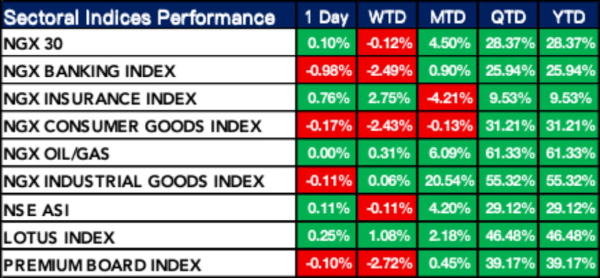 Nigeria Sectoral Indices Performance