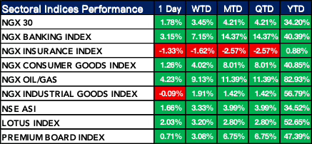Nigeria Sectoral Indices Performance