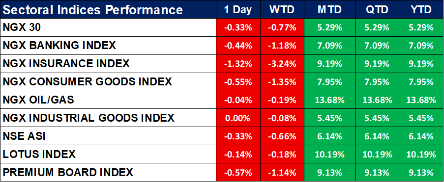 Nigeria Sectoral Indices Performance
