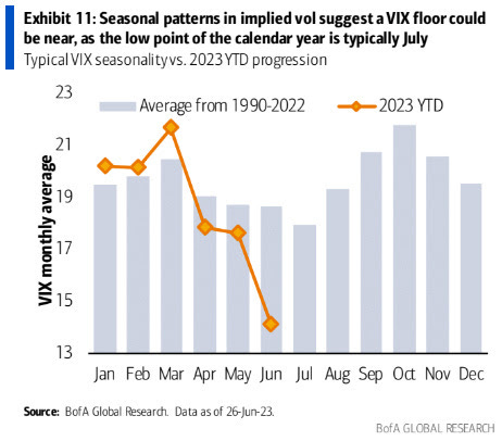 However, this month has seen more VIX call options traded than any other month on record and as BofA strategist write, “seasonality suggests a VIX floor could be near–even if the catalyst higher remains elusive”.